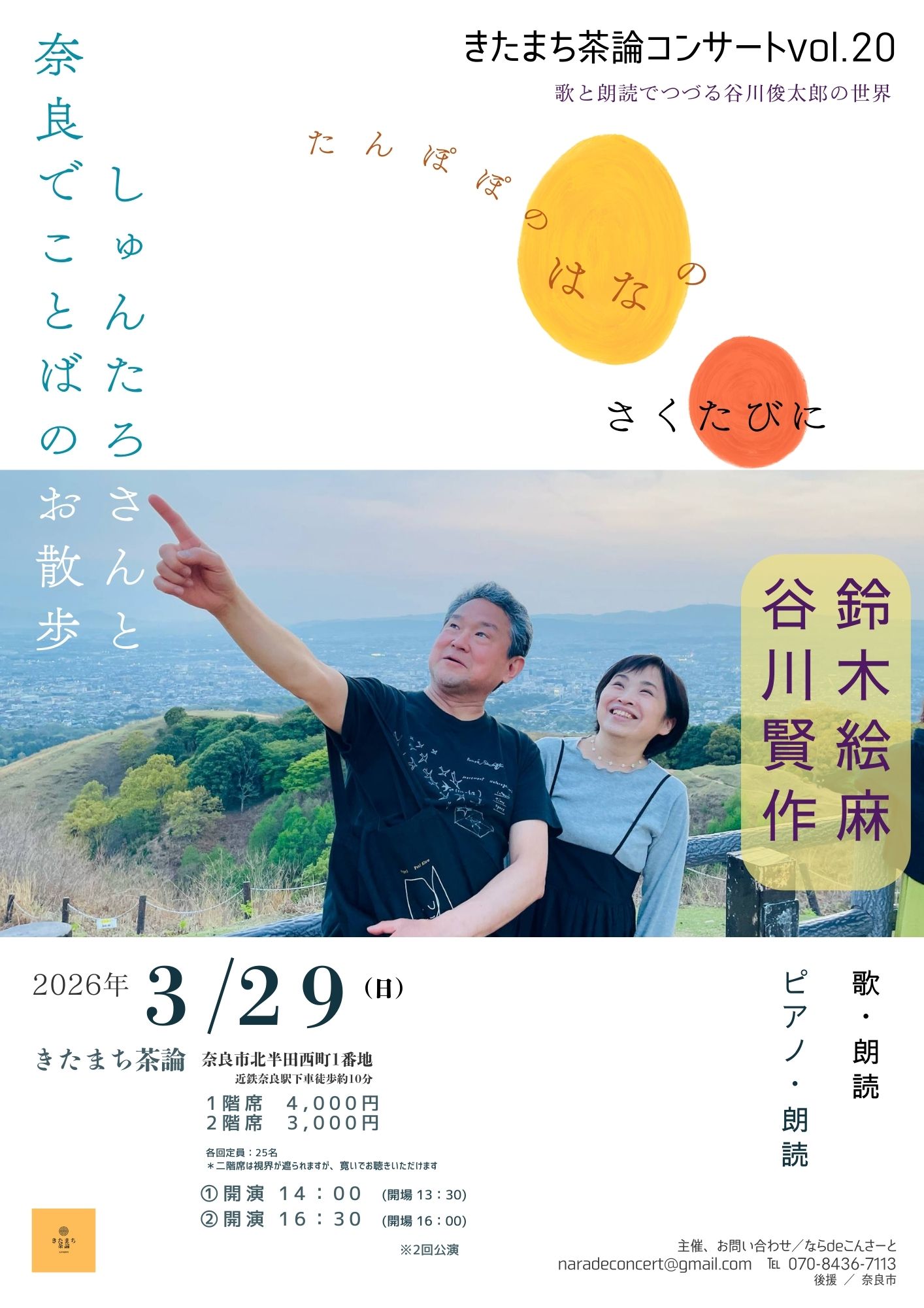 《12/25発売》2026年3月29日(日)「きたまち茶論コンサートvol.20」たんぽぽのはなの さくたびに 〈鈴木絵麻+谷川賢作〉